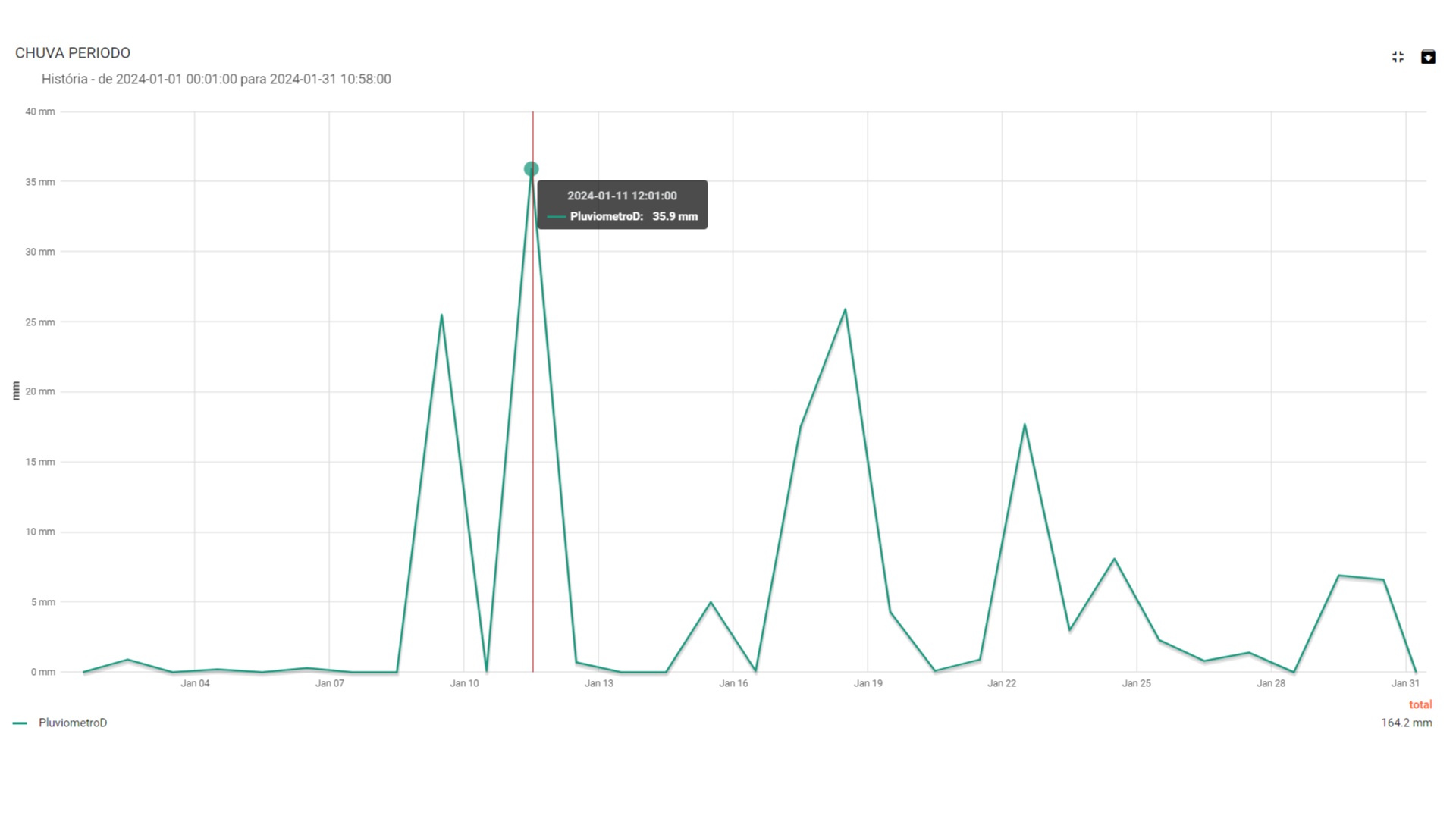 Abrindo o gráfico, é possível ver com mais detalhes e filtrar períodos específicos